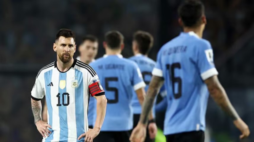 আর্জেন্টিনার চোখে চোখ রেখে লড়াই করল উরুগুয়ে। প্রথমার্ধে এগিয়ে যাওয়ার পর দ্বিতীয়ার্ধের শেষ দিকে করল ব্যবধান দ্বিগুণ। প্রায় এক মাস প্রতিযোগিতামূলক ম্যাচ না খেলা লিওনেল মেসি মাঝে মধ্যে ঝলক দেখালেন বটে, কিন্তু পারলেন না দলকে বাঁচাতে। কাতার বিশ্বকাপ জয়ের পর প্রথম হারের তেতো স্বাদ পেল লিওনেল স্কালোনির দল। বুয়েন্স এইরেসে শুক্রবার বাংলাদেশ সময় সকালে ২০২৬ বিশ্বকাপের লাতিন আমেরিকা অঞ্চলের বাছাইয়ে উরুগুয়ের বিপক্ষে ২-০ গোলে হেরেছে আর্জেন্টিনা। রোনালদ আরাউহো দলকে এগিয়ে নেওয়ার পর ব্যবধান দ্বিগুণ করেন দারউইন নুনেস। বিশ্বকাপের গ্রুপ পর্বে সৌদি আরবের কাছে ২-১ গোলে হারের পর টানা ১৪ ম্যাচ জিতে উড়ছিল আর্জেন্টিনা। তাদেরকে মাটিতে নামাল উরুগুয়ে; আর্জেন্টাইন কোচ মার্সেলো বিয়েলসার কৌশল মেলে ধরে।