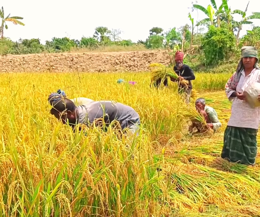 কৃষকেরা ঘরে তুলছে বোরো সোনালী স্বপ্নে বাধা হতে পারে কাল বৈশাখ