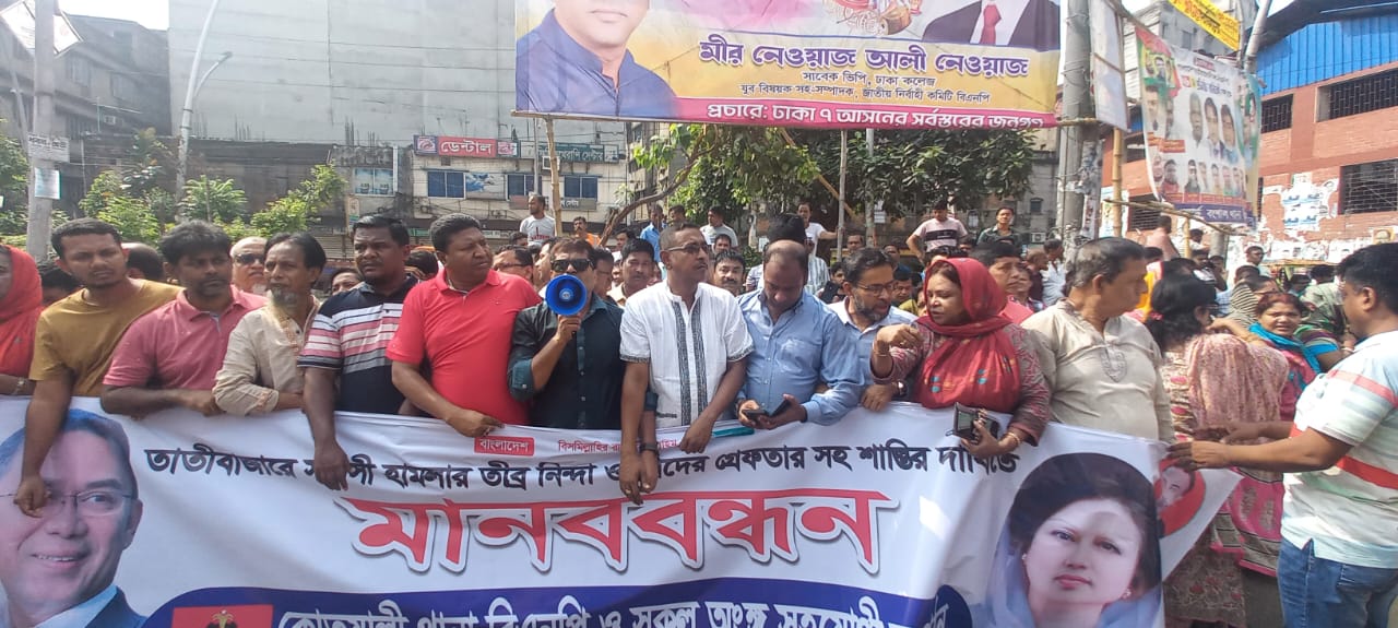 নিজস্ব প্রতিবেদক রাজধানীর তাঁতীবাজারে পূজামণ্ডপে ‘পেট্রলবোমা’ নিক্ষেপের ঘটনার জড়িত ব্যক্তিদের দৃষ্টান্তমূলক শাস্তি চেয়ে মানববন্ধনে স্থানীয় বিাএনপি নেতারা অভিযোগ করেছেন, সংখ্যালঘুদের ওপর নির্যাতন ও হামলা করে এতদিন ধরে যারা ইস্যু তৈরী কারে অপরাজনীতি করে আসছে,...