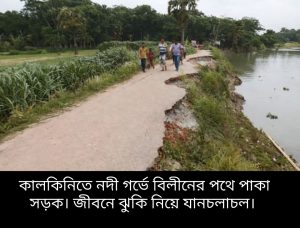 কালকিনিতে নদী থেকে বালু উত্তোলনের ফলে সড়ক ধসে বিলীনের পথে!