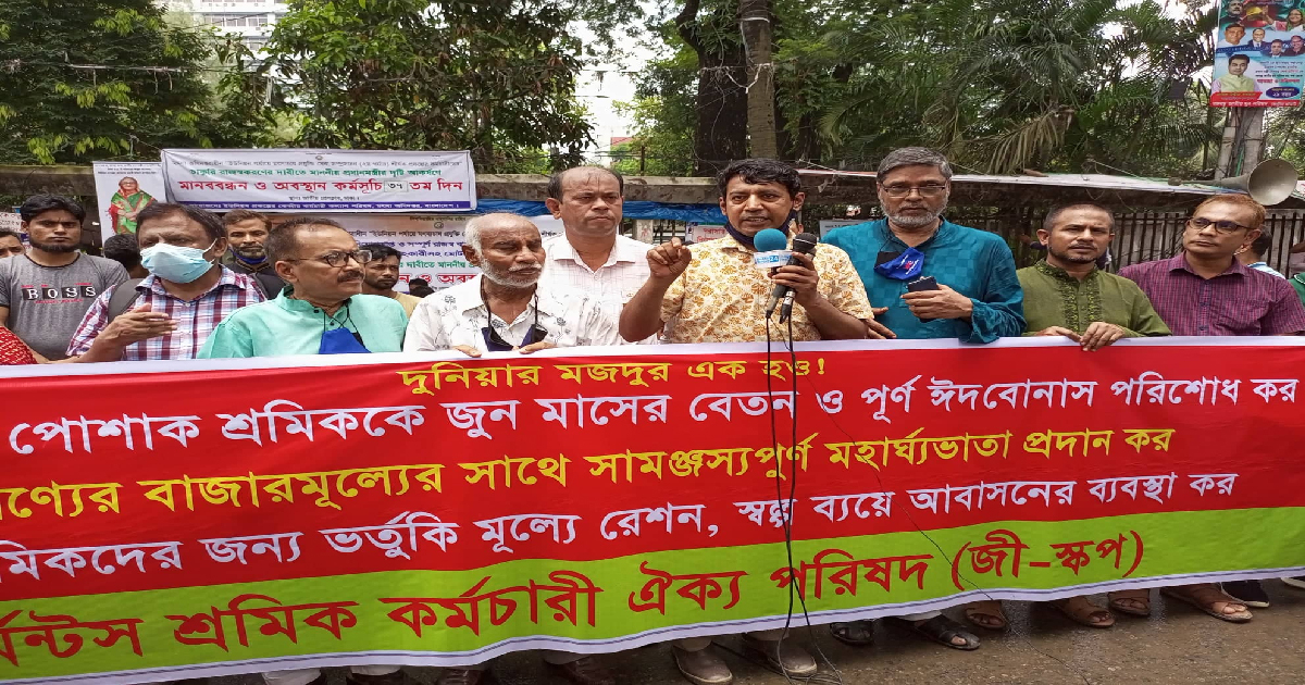 ঈদ বোনাসসহ জুন মাসের বেতন অবিলম্বে পরিশোধের দাবিতে শুক্রবার রাজধানীতে পোশাক শ্রমিকরা বিক্ষোভ করেছে। গার্মেন্ট শ্রমিক শ্রমিক ঐক্য পরিষদ (জি-স্কপ), ২০টি শ্রমিক সংগঠনের জোট জাতীয় প্রেসক্লাবের সামনে বিক্ষোভের আয়োজন করে। অনুষ্ঠানে বক্তৃতায় শ্রমিক নেতারা...
