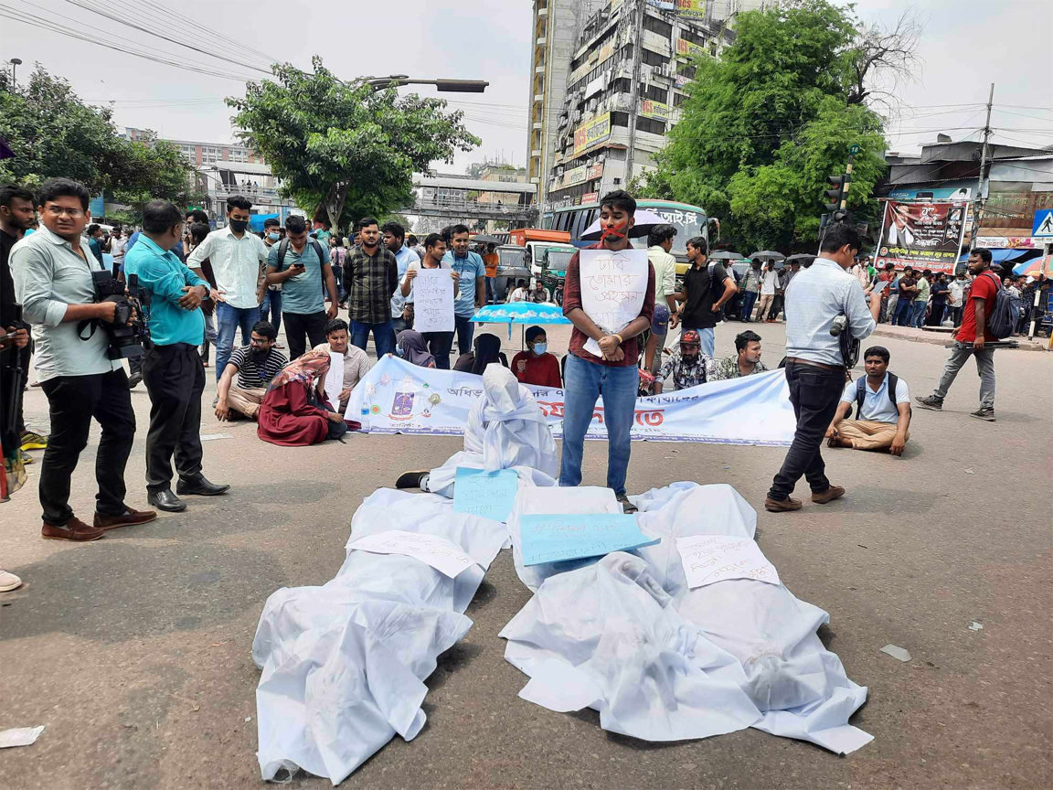 নীলক্ষেত অবরোধ করে ঢাবি অধিভুক্ত ৭ কলেজের শিক্ষার্থীদের বিক্ষোভ