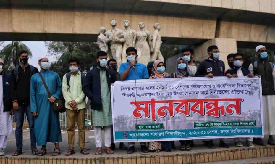 গেস্টরুমে নির্যাতন বন্ধের দাবি ঢাবি শিক্ষার্থীদের
