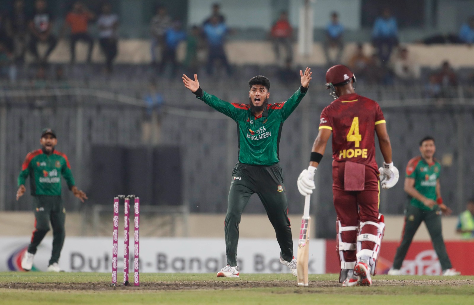 মিরপুর শেরেবাংলা স্টেডিয়ামে ওয়েস্ট ইন্ডিজের বিপক্ষে দারুণ এক জয় তুলে নিয়েছে বাংলাদেশ। ব্যাটে-বলে উজ্জ্বল ছিলেন তরুণ লেগস্পিনার রিশাদ হোসেন। তার ঘূর্ণি জাদুতে ৭৪ রানের বড় ব্যবধানে হার মানতে হয়েছে সফরকারীদের। রিশাদ একাই শিকার...