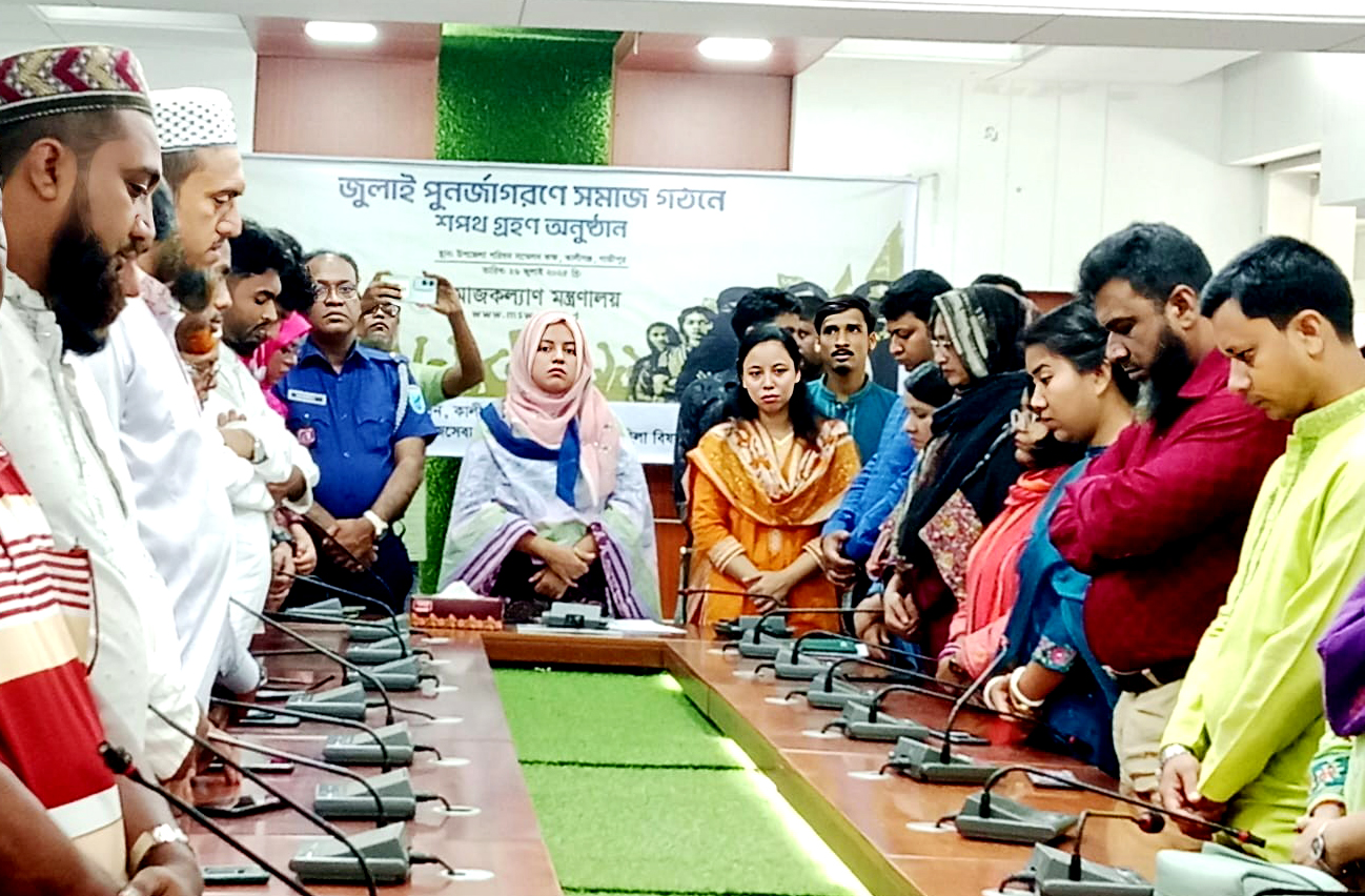 কালীগঞ্জ (গাজীপুর) প্রতিনিধিঃ রাষ্ট্রীয় কর্মসূচির আওতায় সারাদেশের ন্যায় কালীগঞ্জে জুলাই পুনর্জাগরণে সমাজ গঠনে ভার্চুয়ালী লাখো কণ্ঠে শপথ গ্রহন অনুষ্ঠিত হয়েছে। শনিবার (২৬ জুলাই) সকালে উপজেলা পরিষদ সম্মেলন কক্ষে উপজেলা প্রশাসনের আয়োজনে, উপজেলা সমাজসেবা ও...