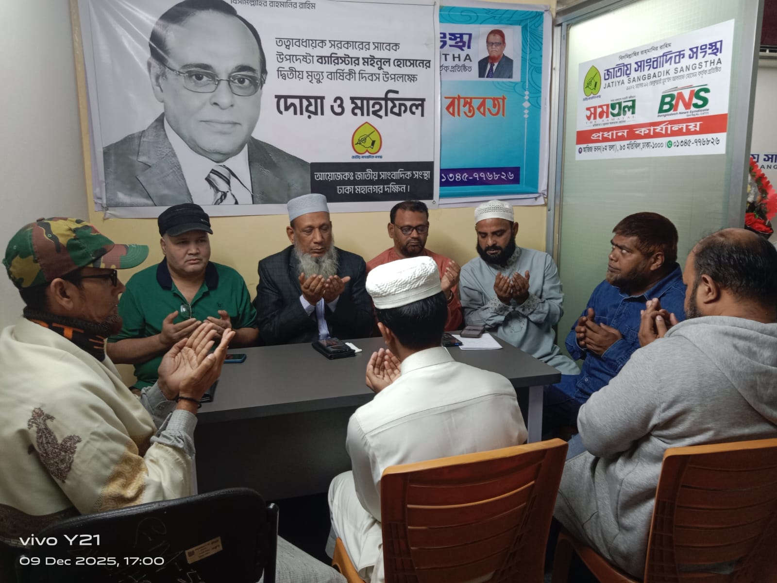 ব্যারিস্টার মইনুল হোসেনের দ্বিতীয় মৃত্যুবার্ষিকী যথাযোগ্য মর্যাদা ও শ্রদ্ধার সঙ্গে পালিত হয়েছে। মঙ্গলবার ০৯ ডিসেম্বর ২০২৫ রাজধানীর জাতীয় সাংবাদিক সংস্থা কেন্দ্রীয় কার্যালয়ে এ উপলক্ষে কোরআন তেলাওয়াত ও দোয়া মাহফিলের আয়োজন করা হয়। অনুষ্ঠানে...