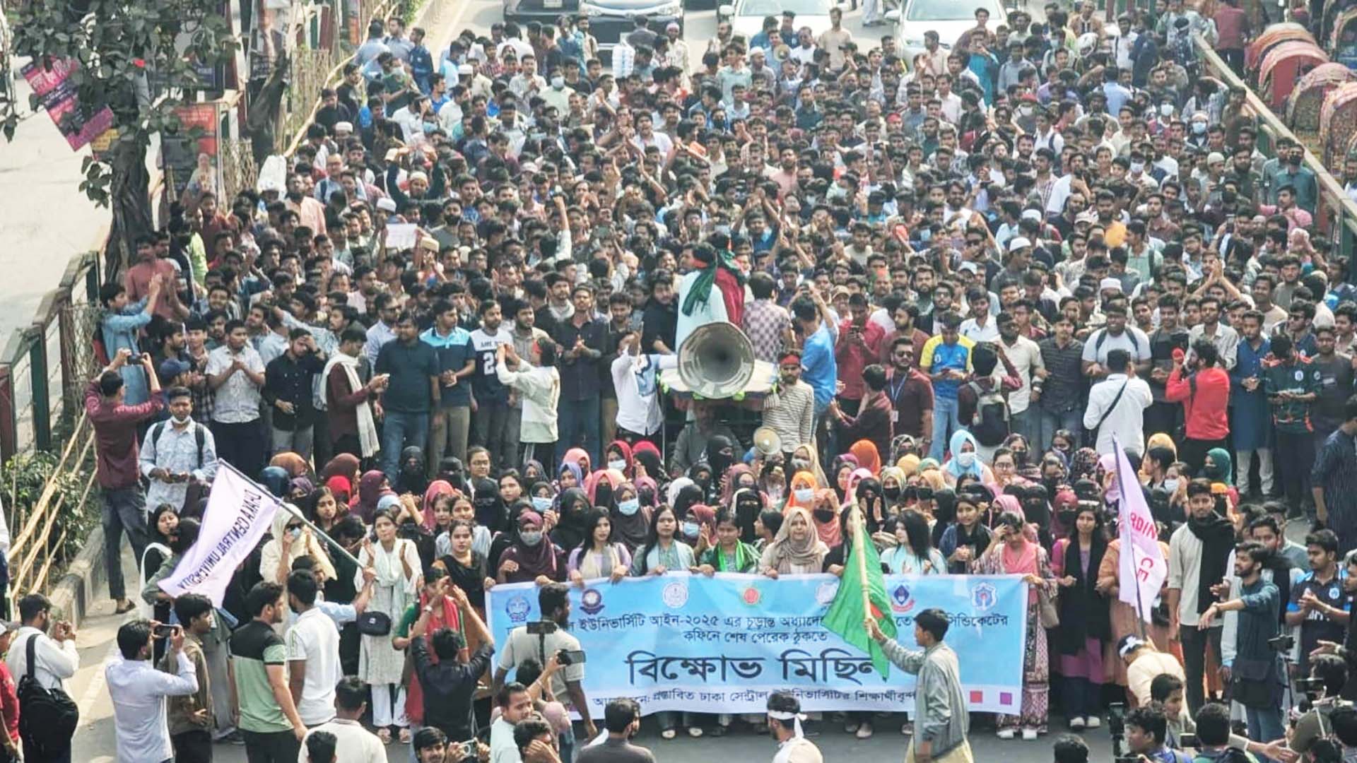 ঢাকা সেন্ট্রাল ইউনিভার্সিটির অধ্যাদেশ দাবিতে সায়েন্সল্যাব অবরোধ