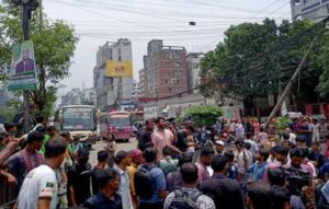 সাকিবুল হত্যার বিচার চেয়ে ফার্মগেট অবরোধ, বাস ভাঙচুর