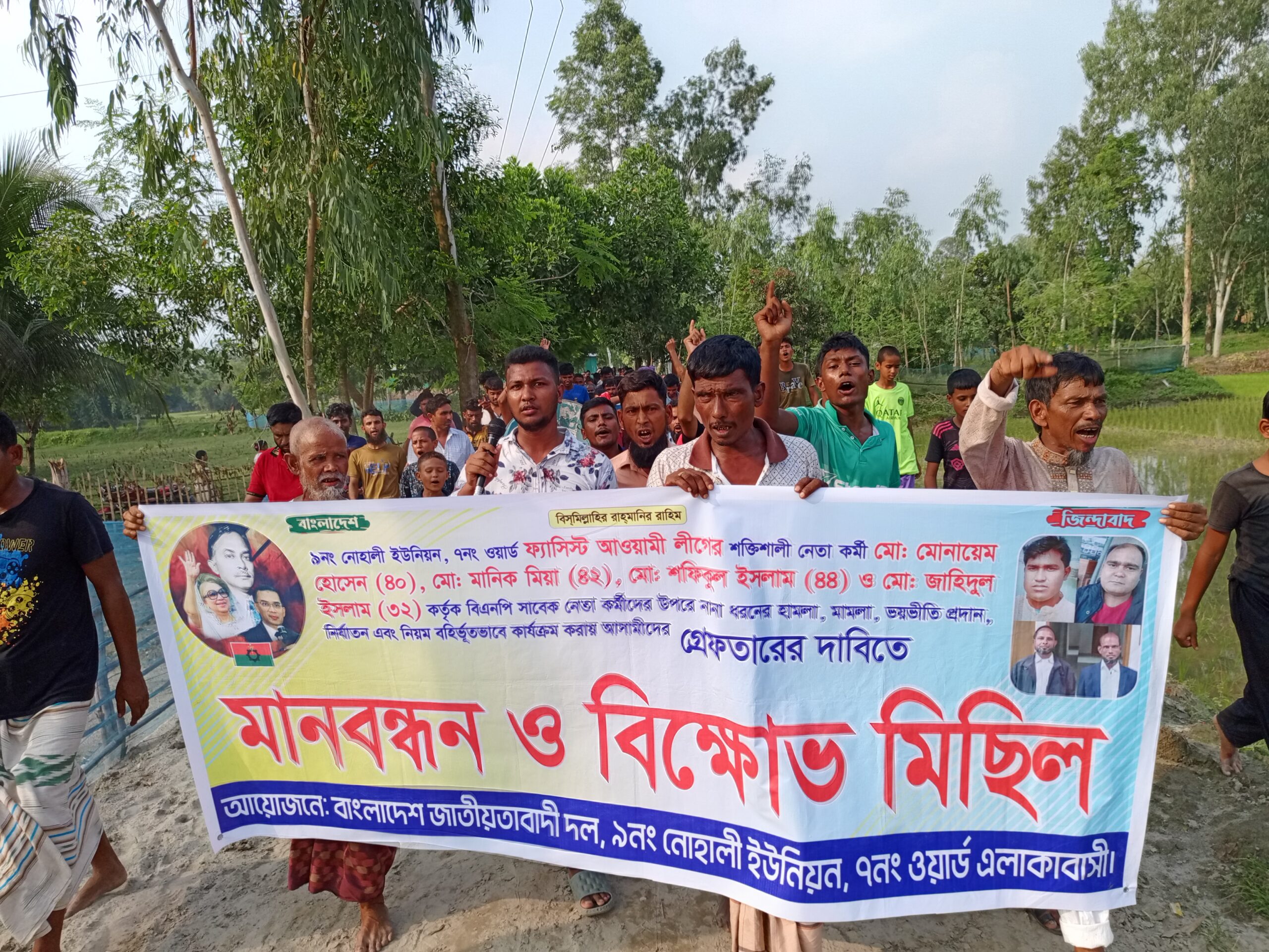 গঙ্গাচড়ার চরে বিএনপি নেতাকর্মীদের ওপর হামলার ঘটনায় আওয়ামী কর্মীদের গ্রেফতারের দাবিতে মানববন্ধন ও বিক্ষোভ মিছিল