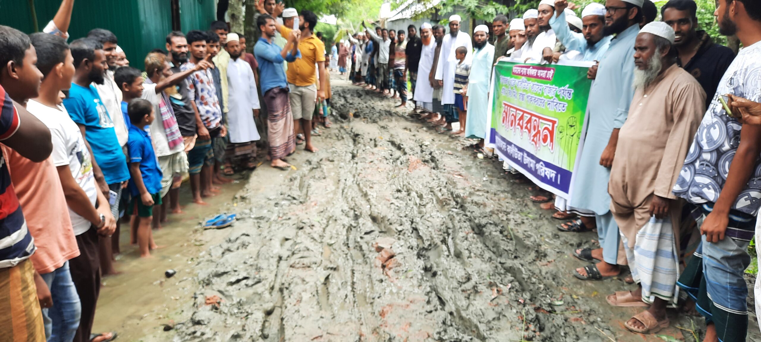 নাসিরনগরে সড়ক সংস্কারের দাবিতে এলাকাবাসির মানববন্ধন ও বিক্ষোভ