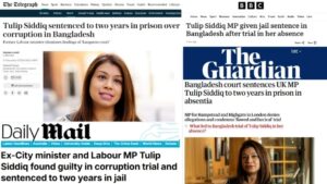 ব্রিটিশ গণমাধ্যমে লেবার এমপি টিউলিপের কারাদণ্ডের খবর