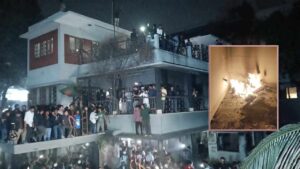 ব্যাপক ভাঙচুরের পর ধানমন্ডি ৩২ নম্বর বাড়িতে আগুন