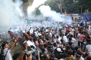 ব্যারিকেড ভাঙার চেষ্টা শিক্ষকদের, জলকামান-সাউন্ড গ্রেনেড নিক্ষেপ