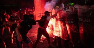 নির্বাচনের দাবিতে বিক্ষোভে উত্তাল সার্বিয়া