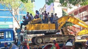 ধানমন্ডি ৩২ নম্বরের দিকে বুলডোজার নিয়ে যাচ্ছে বিক্ষুব্ধ জনতা