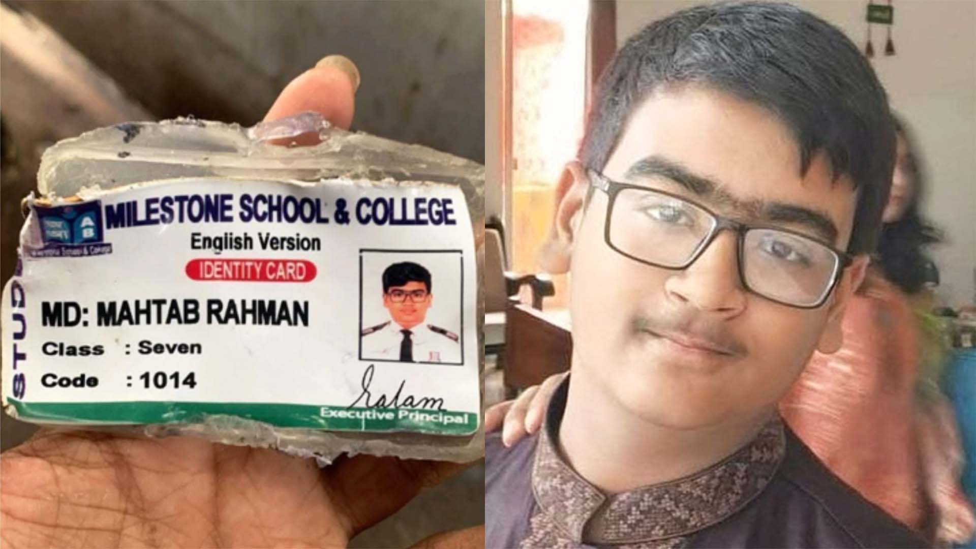 রাজধানীর উত্তরায় বিমানবাহিনীর যুদ্ধবিমান বিধ্বস্তের চারদিন পর দগ্ধ শিক্ষার্থী মাহতাব রহমান (১৫) মারা গেছে। বৃহস্পতিবার (২৪ জুলাই) বেলা ১টা ৫০ মিনিটের দিকে জাতীয় বার্ন ও প্লাস্টিক সার্জারি ইনস্টিটিউটে চিকিৎসাধীন অবস্থায় মারা যায় মাহাতাব। স্কুলটির...