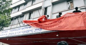 লাল কাপড়ে ঢাকা হলো ঢাকা পলিটেকনিকের মূল ফটক