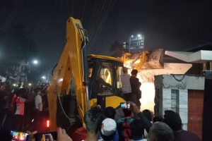 খুলনায় বুলডোজার দিয়ে গুঁড়িয়ে দেওয়া হচ্ছে ‘শেখ বাড়ি’