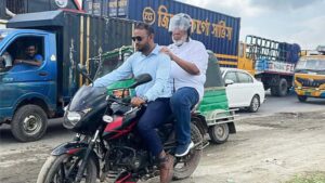 যানজটে আটকা গাড়ি, বাধ্য হয়ে মোটরসাইকেলে চড়লেন সড়ক উপদেষ্টা