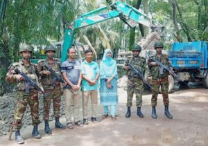 সোনাইমুড়িতে জলাবদ্ধতা নিরসনে অবৈধ স্থাপনা উচ্ছেদ ও বাঁধ কেটে পানি নিষ্কাশন